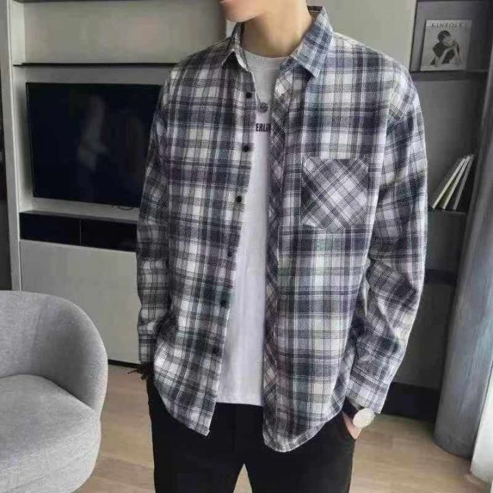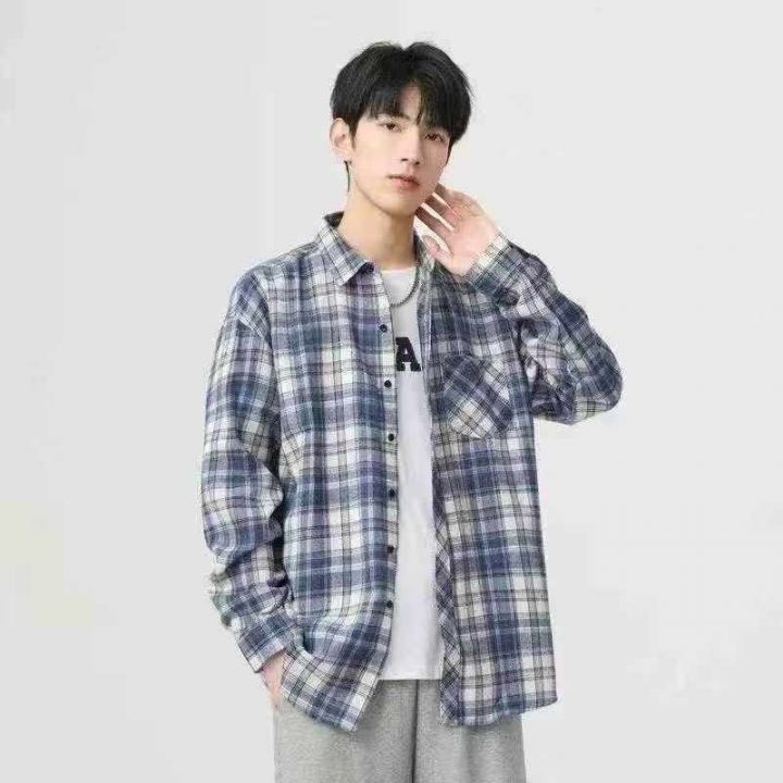 格子长袖衬衫男士春秋季新款潮牌时尚宽松休闲衬衣外套 独立包装 315件 码数M-2XL