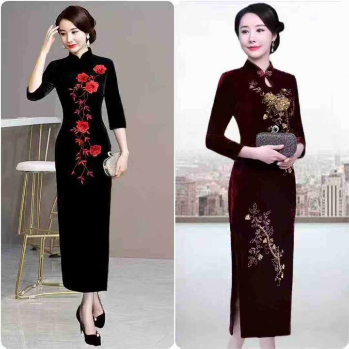 天猫仓回收232件改良金丝绒长款高端礼服复古气质优雅开叉旗袍连衣裙,码数S-3XL。版型质量好,面料柔软有弹性,满满高级感。有独立包装。分货➕1