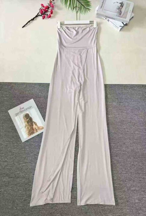 欧美时尚洋气抹胸开衩连体裤,整款两色,数量100条左右,码数S-2XL,高弹力品质好,有独立包装。。 货号:24862