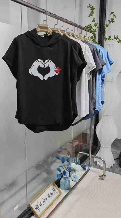 全清价5.8元捡漏100件不规则连帽上衣打底衫夏季洋气修身显瘦短袖t恤女,独...