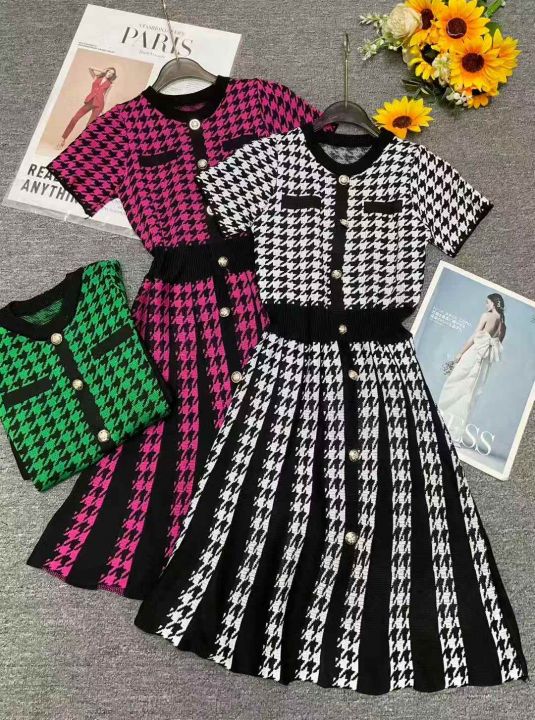 秋冬新款撞色小香风针织毛衣连衣裙,独立包装,均码面...