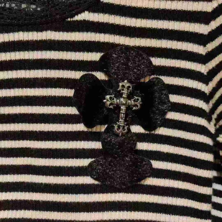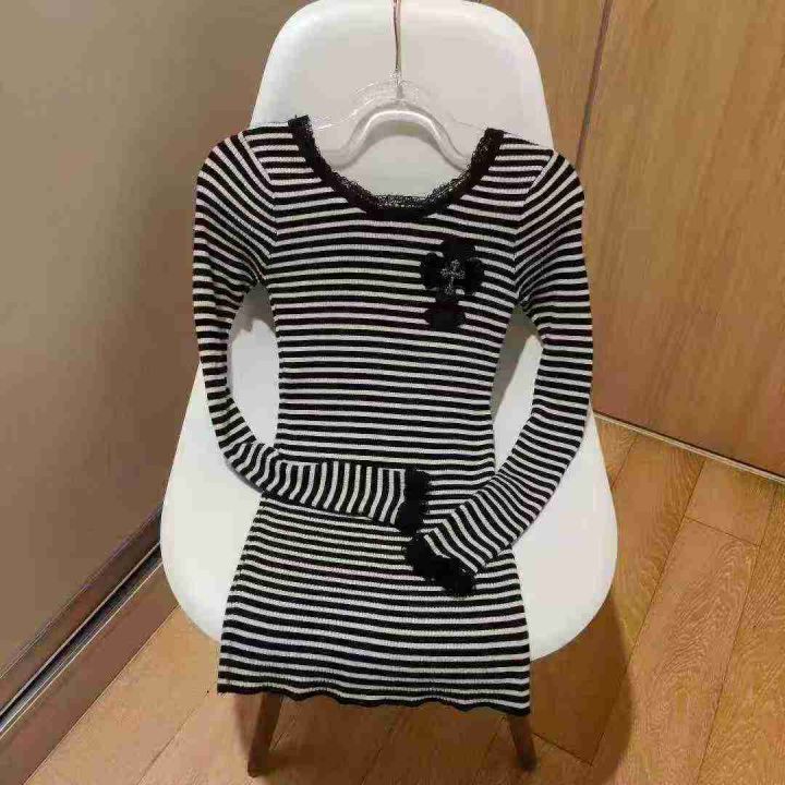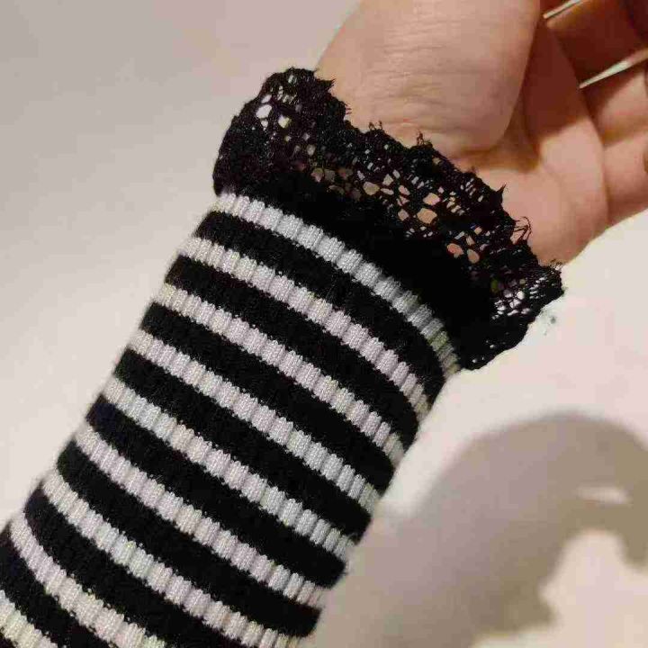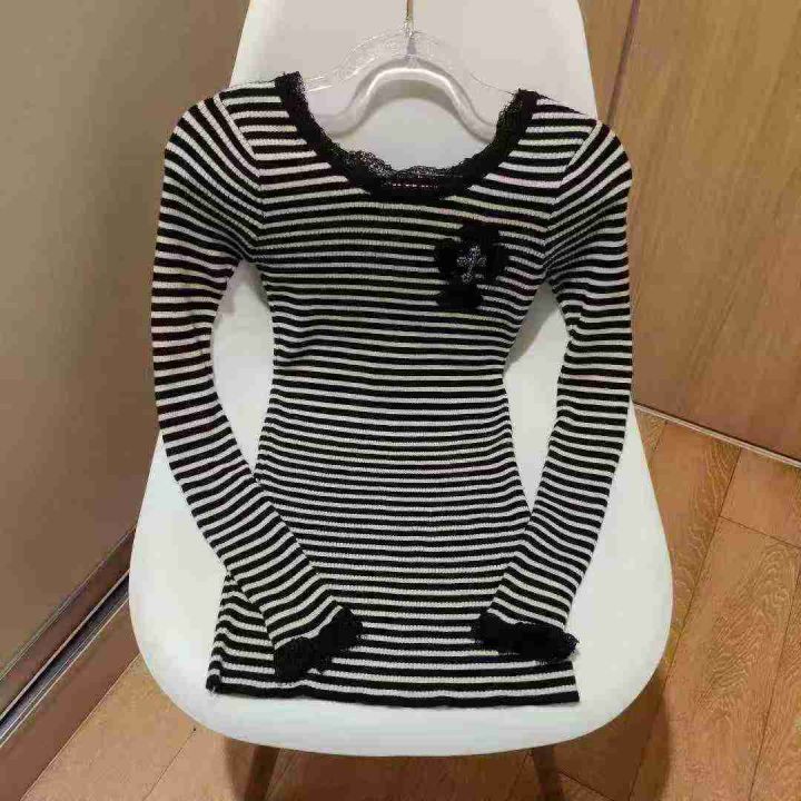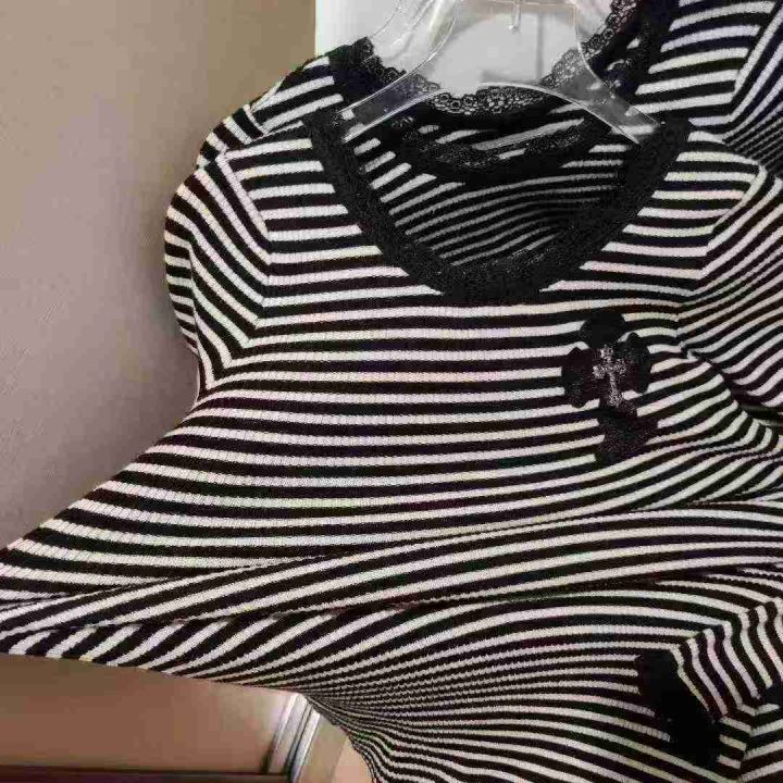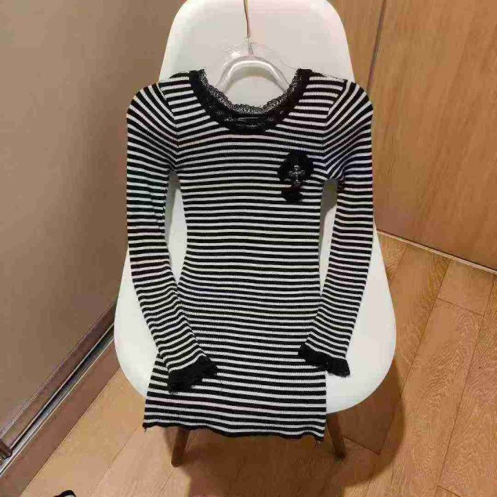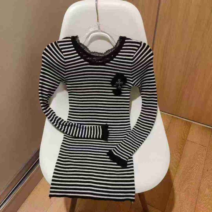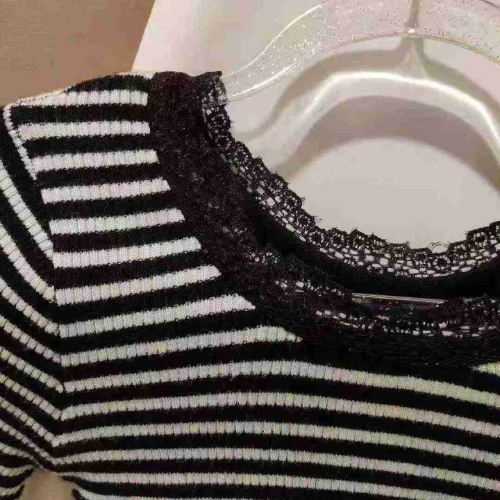 #服装批发,全清6.9条纹蕾丝花边针织圆领打底衫,单款...