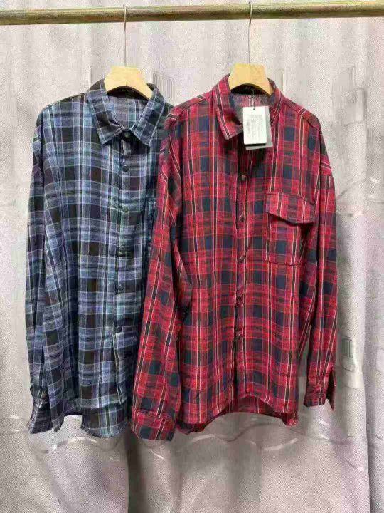 美式复古格子女衬衫宽松外套长袖上衣衬衣港风薄款格子衬衫.两个色S一2XL码60件左右.全清6.8。 货号:1303