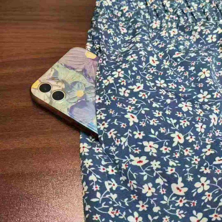 夏新款印花木耳边抽绳灯笼裤复古宽松飘逸薄休闲裤,独...