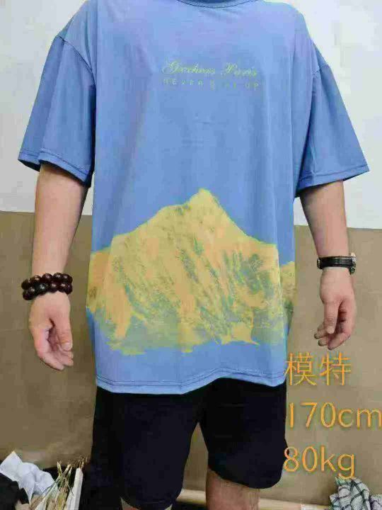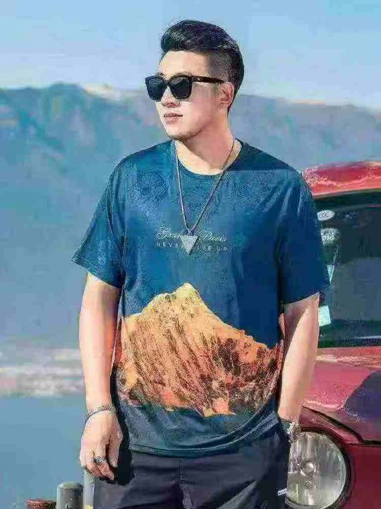 大码男装冰丝短袖T恤夏季新款宽松短袖男士凉感知袖上衣