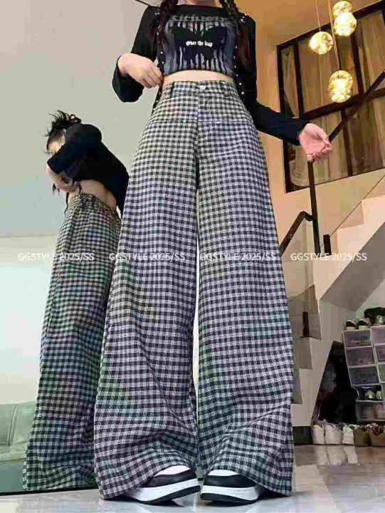 高弹力格子阔腿裤☕️108条全清11.8元,码数S到XL,独立包装,设计感经典黑白格纹休闲裤女夏季新款显瘦垂坠感拖地阔腿长裤