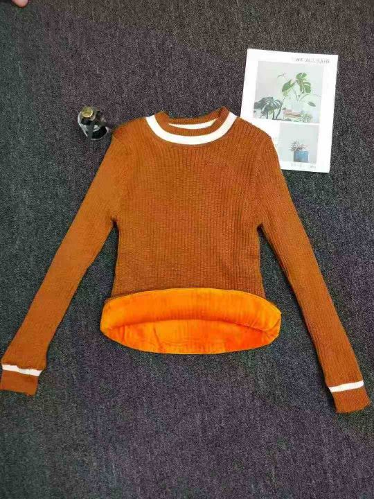 春秋新款女士毛衣女超仙甜美加绒款拼色针织衫,数量18...