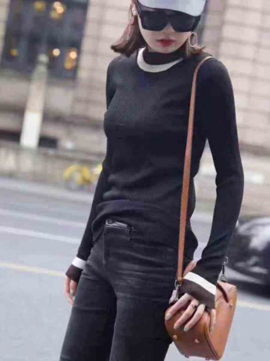 春秋新款女士毛衣女超仙甜美加绒款拼色针织衫,数量18...