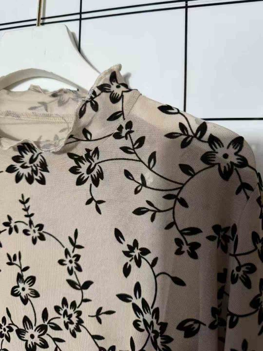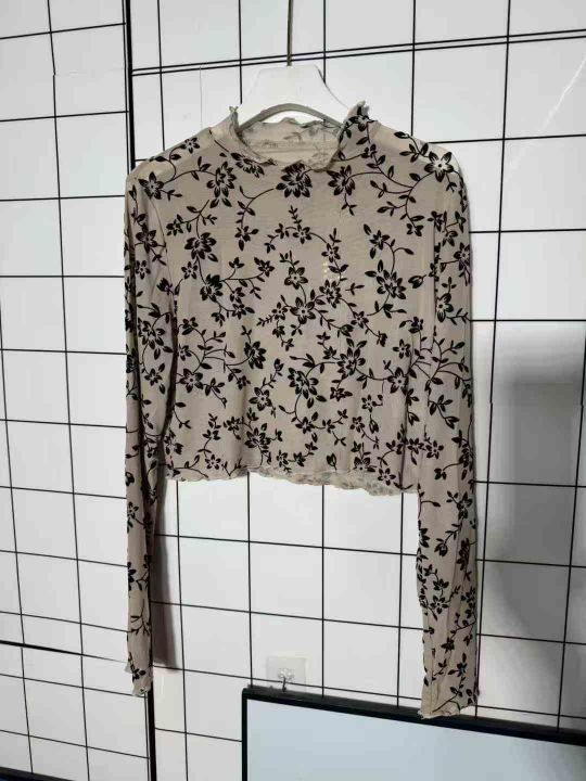 5.8清294件春秋植绒碎花半高领蕾丝打底衫女性感木耳边网纱内搭纱衣 码数S-2XL 独立包装