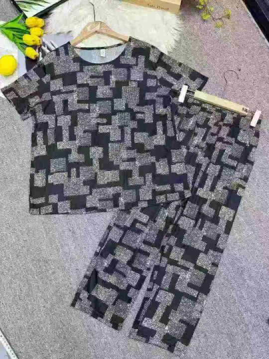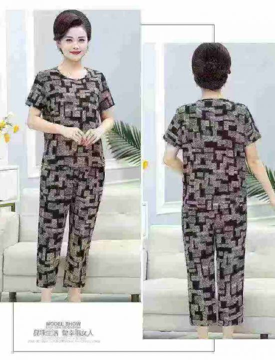 妈妈夏装套装冰丝亲肤凉快舒服可外穿中老年人女款上衣五分裤两件套,整款单色,XL裤长82厘米,码数L-3XL,数量222套,(货号0915#53)。 货号:1303