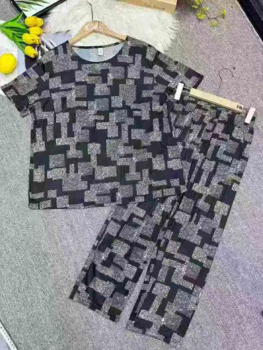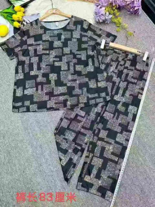 妈妈夏装套装冰丝亲肤凉快舒服可外穿中老年人女款上衣五分裤两件套,整款单色,XL裤长82厘米,码数L-3XL,数量222套,(货号0915#53)。 货号:1323