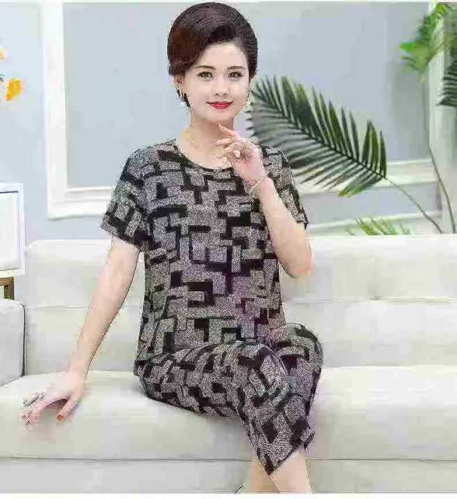全清价5.9元妈妈夏装套装冰丝亲肤凉快舒服可外穿中老...