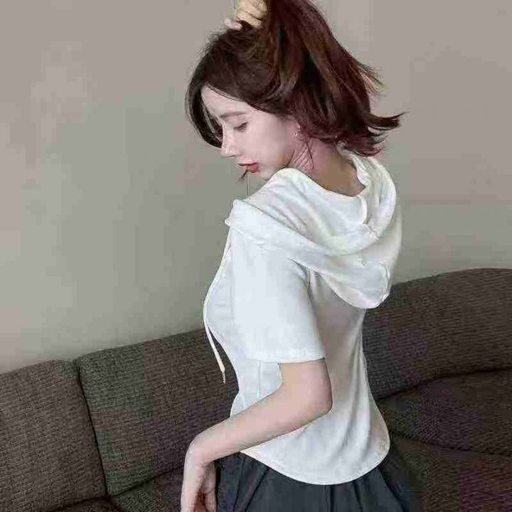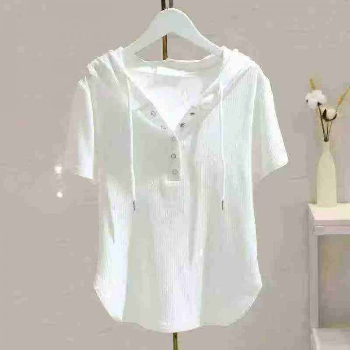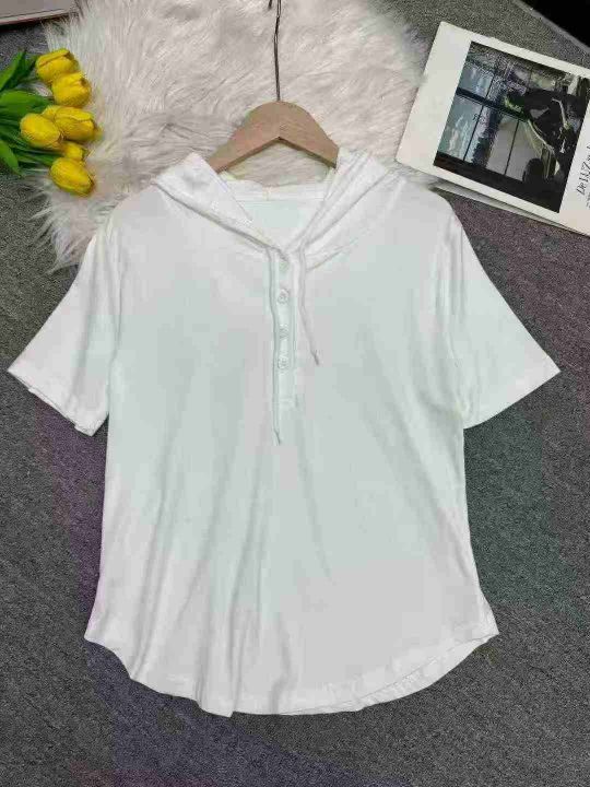 捡漏100件不规则连帽上衣打底衫夏季洋气修身显瘦短袖t恤女,独立包装,码数1-4码,货号1025#57。 货号:1303