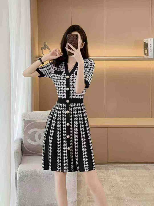 秋冬新款撞色小香风针织毛衣连衣裙,独立包装,均码面...