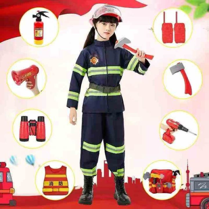 2.8清1100件左右儿童消防服孩子舞台表演服装cosplay小小消防员消防演习扮演衣服 码数4-10岁