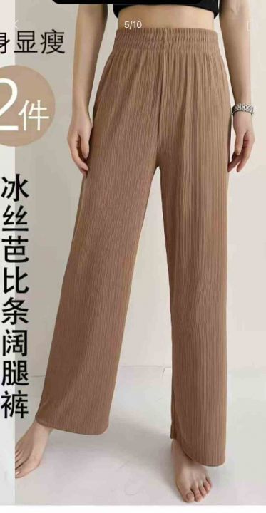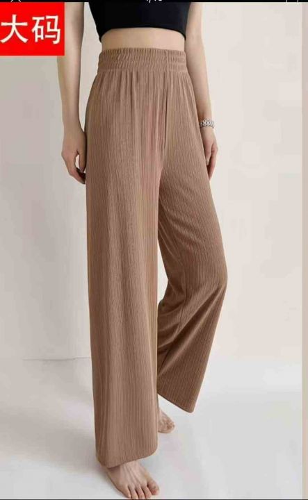 6.8清285件胖mm垂感休闲冰丝阔腿裤子女夏季薄款防蚊抖抖凉凉长裤 松紧腰头码数S--XL 独立包装