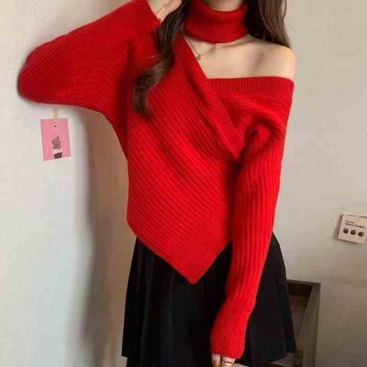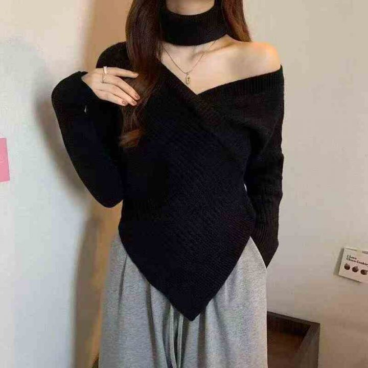 11.8清30件靓妹辣妹挂脖上衣外穿时尚女针织不规则春秋季打底设计韩版显瘦感修身毛衣 面料柔软舒适码数均码 实体店可入 独立包装