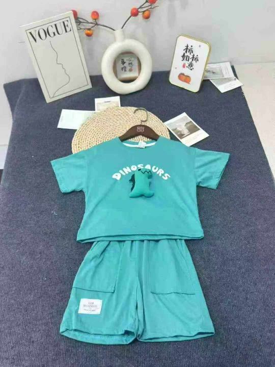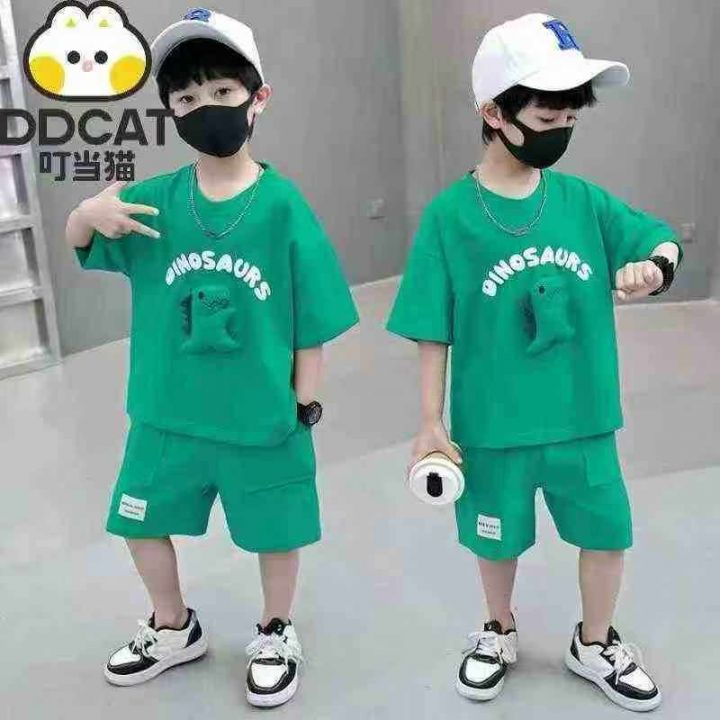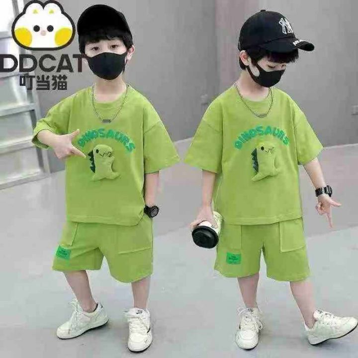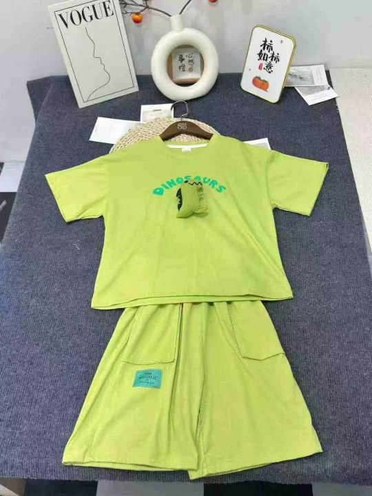 男童夏季套装2025新款洋气恐龙男孩童装衣服儿童帅气男宝宝夏装,数量612套,码数90-140,独立包装后领包边,恐龙可拆卸分开装的,全清9.9元