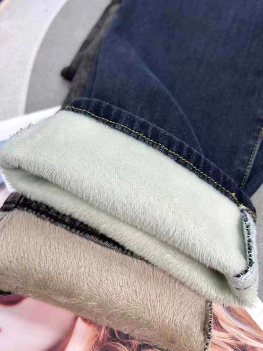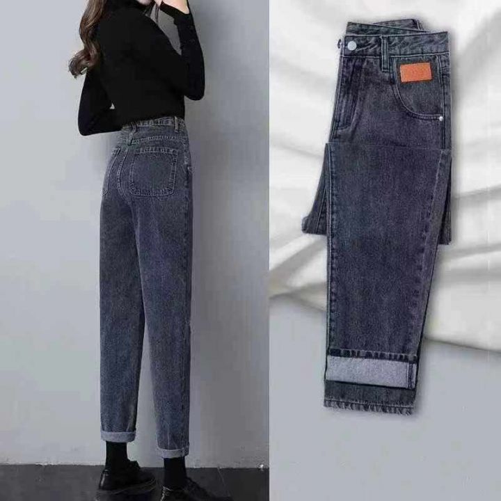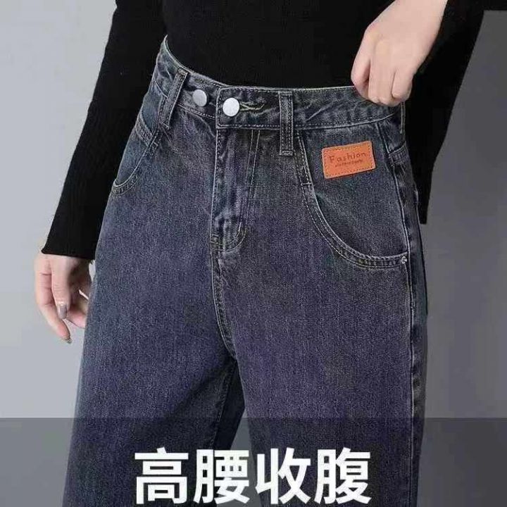 冬季加绒女士高腰显瘦百搭哈伦弹力老爹牛仔裤,整款2...