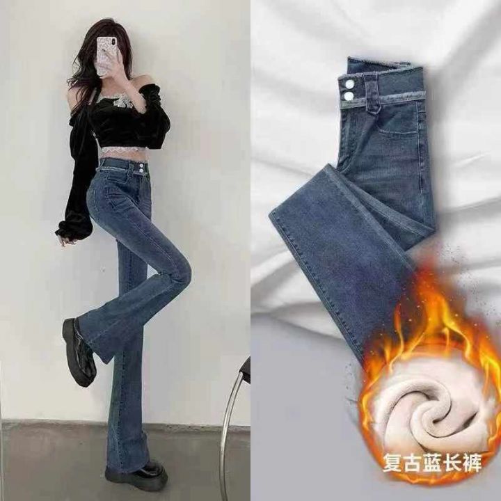 微喇加绒弹力高腰显瘦牛仔裤,整款2个颜色,独立包装...