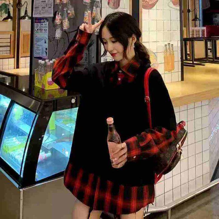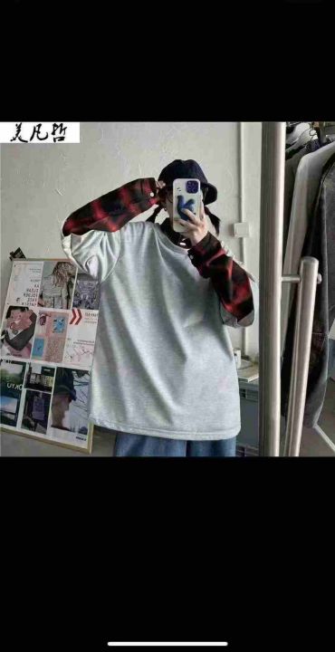 爆款假两件棉质卫衣春秋新款美式复古格子上衣宽松休闲,数量3400件,码数m-2xl,独立包装,全清5.5,分货+0.5元。 货号:1323