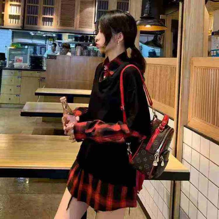 爆款假两件棉质卫衣春秋新款美式复古格子上衣宽松休闲...