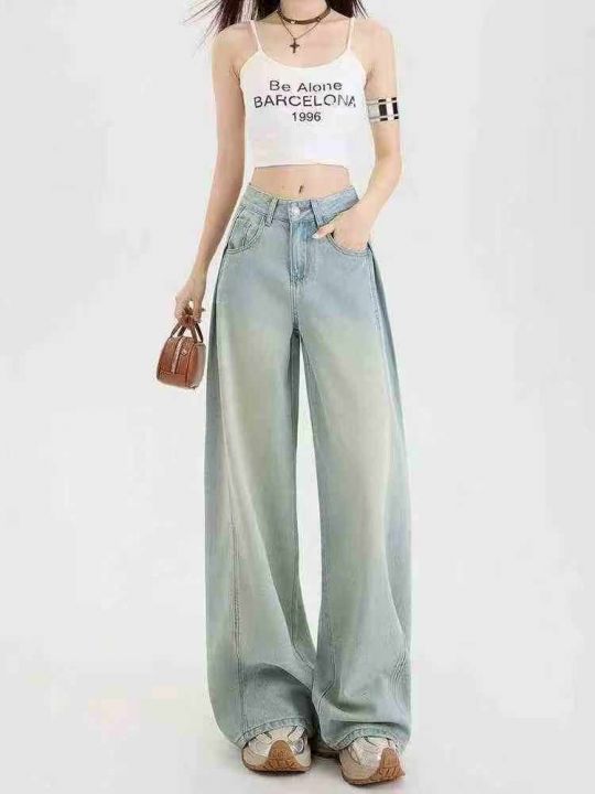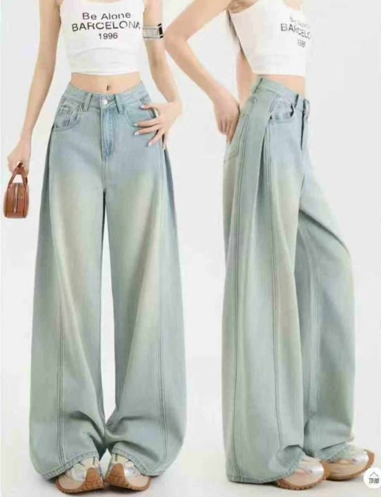 秋季新品复古网红大阔腿牛仔长裤,独立包装带吊牌,码...