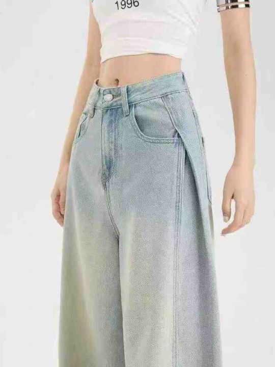 秋季新品复古网红大阔腿牛仔长裤,独立包装带吊牌,码...
