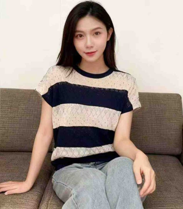 夏季新款轻熟女装冰丝针织T桖,独立包装,均码面料柔...