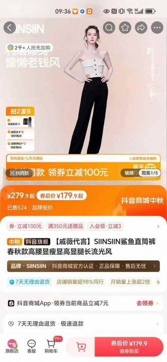 SIINSIIN戚薇代言云感琥珀流光直筒裤,春秋款,黑色和...