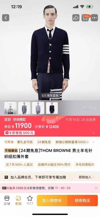 THOM BROWNE/TB男女针织开衫毛衣,M-2XL350件,2个色...