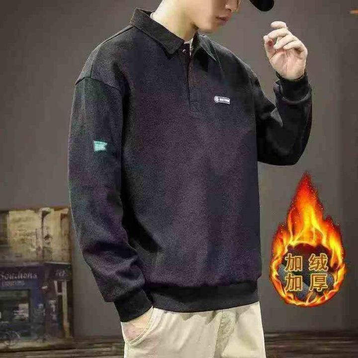 美式高街polo衫男士加绒卫衣长袖新款翻领上衣,数量270件,码数m-3xl,独立包装,后领包边,全清8.8元