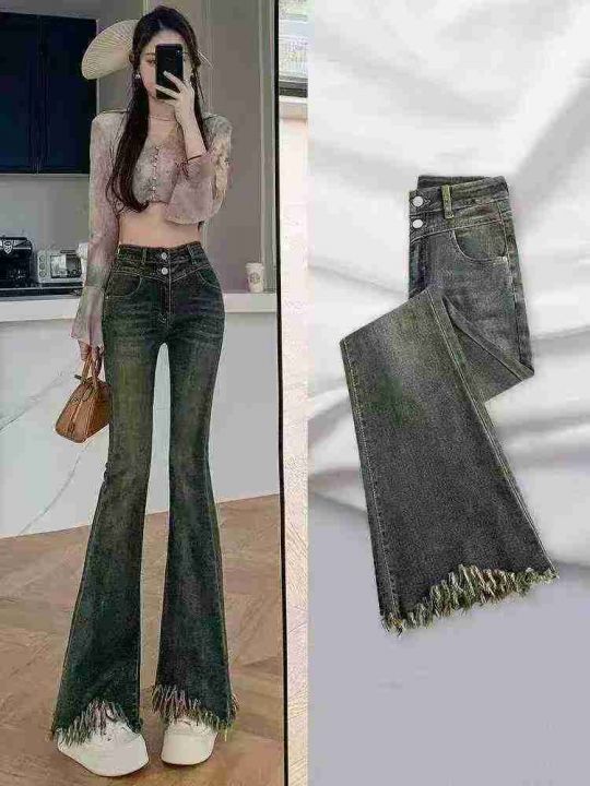 ☕️高弹力流苏微喇牛仔裤女春秋新款高腰显瘦修身时尚马蹄喇叭裤 350条全清...