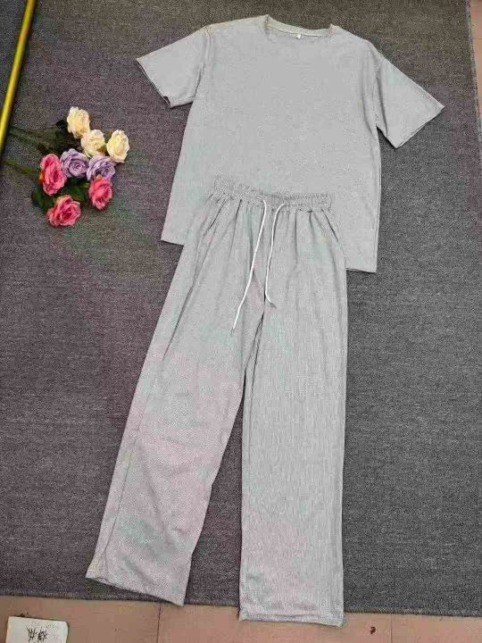 长裤薄款可外穿短袖睡衣夏季简约家居服套,独立包装,数量500件,码数M-4XL,全清10.8元分货+1。 货号:1323