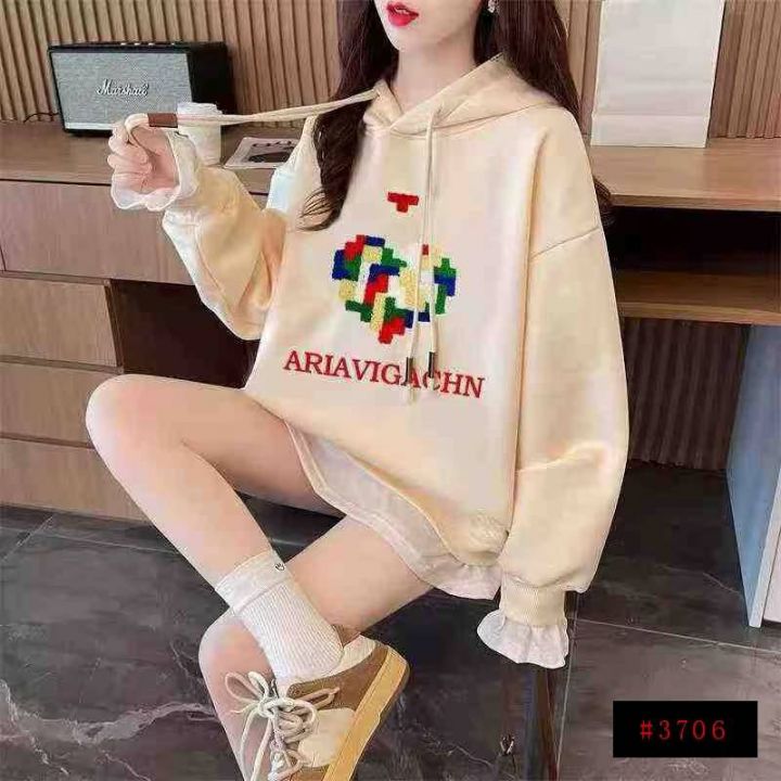 全清价12.8元设计感大版慵懒风时尚休闲加绒假两件连帽卫衣,后领包边,加绒...
