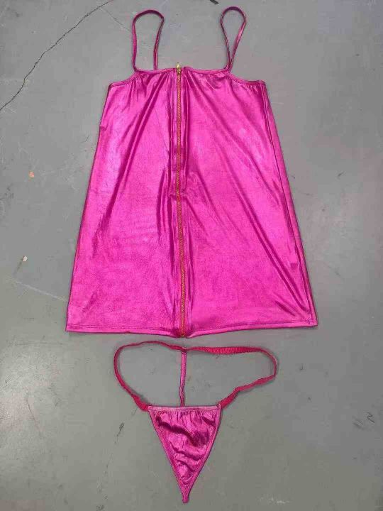 1.8秒杀[庆祝][庆祝] 两件套性感辣妹漆皮吊带弹力包臀连衣裙,独立包装,瑕疵串色(如图8)均码:穿到80-100斤左右,数量230套左右。 货号:24862