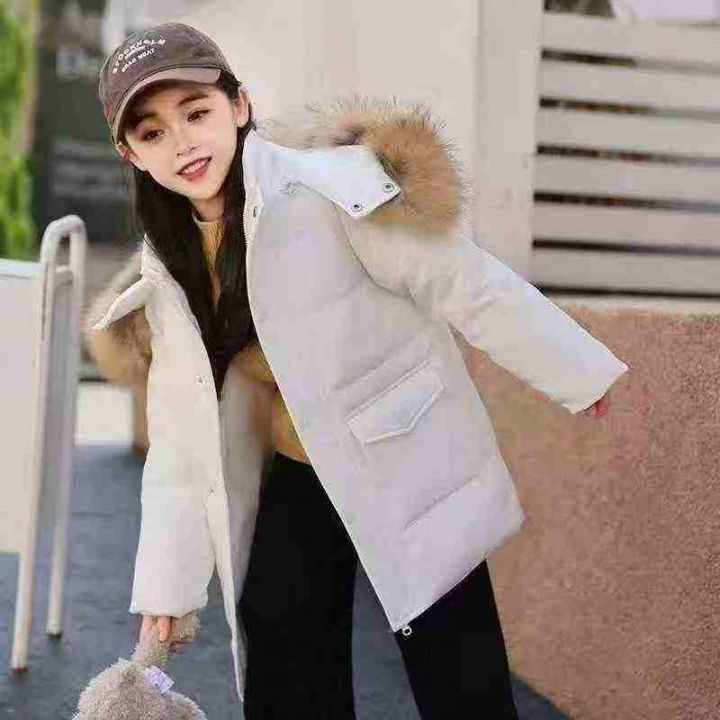 ②儿童羽绒服冬季新款时尚纯色简约中长款百搭保暖羽绒...