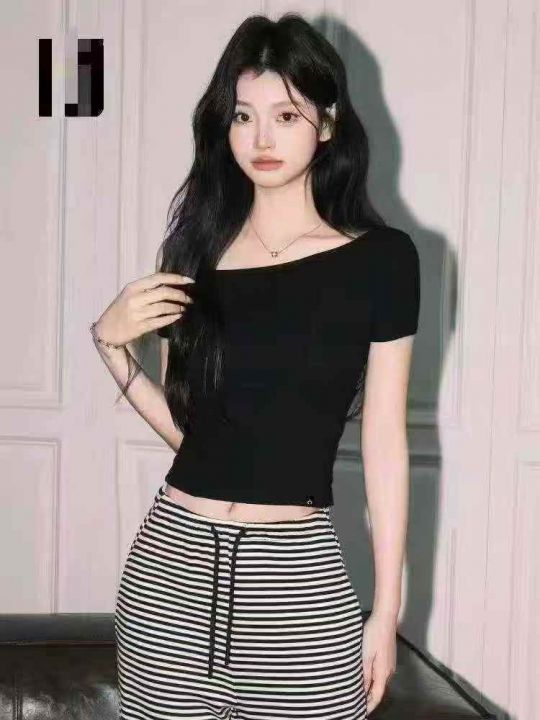 2.5清电商仓回收1166件纯欲性感斜肩短袖上衣,码数S-2...