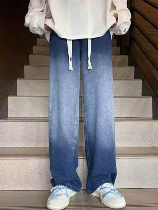 1226条,3个款美式复古直筒渐变抽绳牛仔裤男潮牌街头宽松休闲松紧腰阔腿老爹裤,独立包装,码数S-3XL,全清10.8元,分货➕1