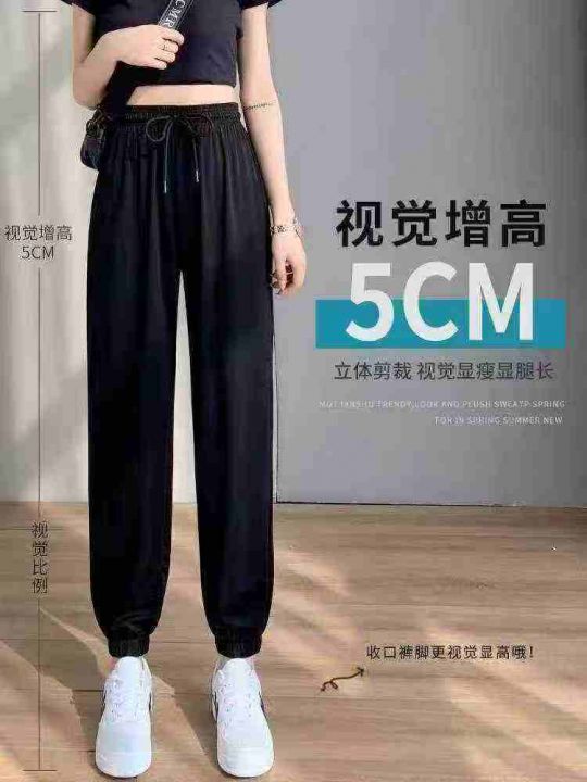 女夏季弹力透气束脚裤子百搭运动休闲冰丝裤,整款4色...