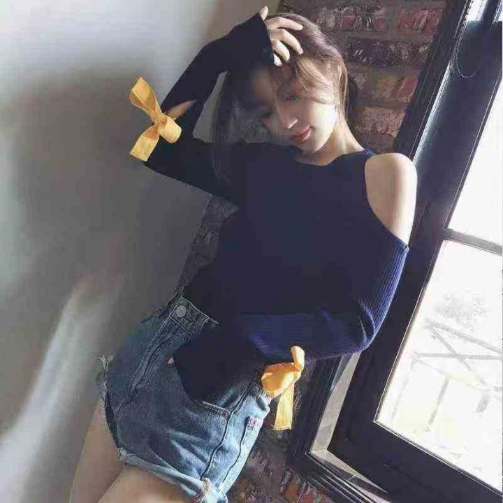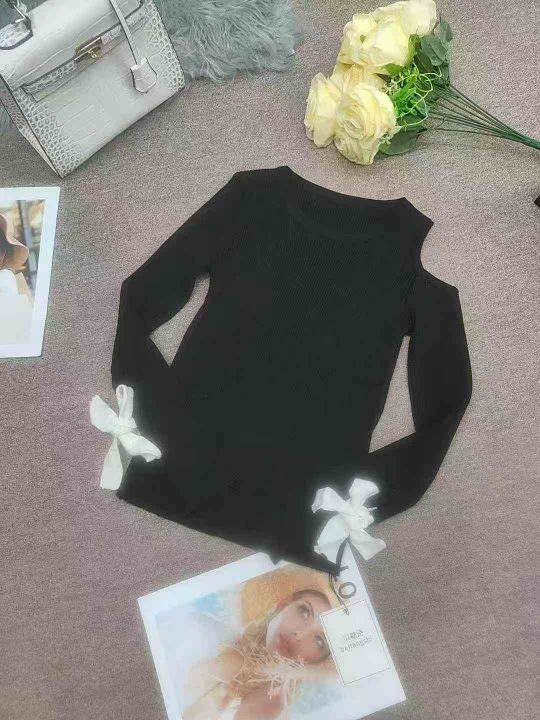 慵懒风毛衣女套头长袖韩国露肩上衣秋冬针织衫,独立包装均码,500件左右,清7.5