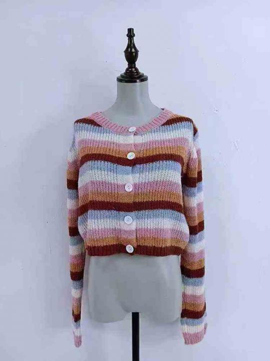 2025秋冬新款潮毛衣女显瘦休闲彩条针织外套开衫,独立包装,均码,418件,清8.8,分➕1
