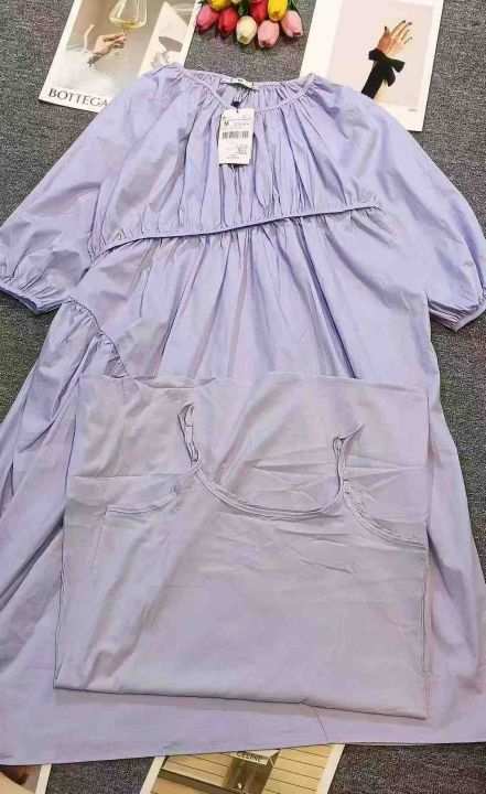 韩版宽松大版型不规则设计感温柔显白泡泡袖吊带两件套长款连衣裙,[爱心]360套左右,S胸围114,码数S-XL,穿80-160斤,万佳档口货,原包装️无瑕疵,[666]实体店品质,分货加一。 货号:1323