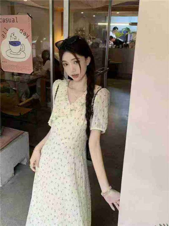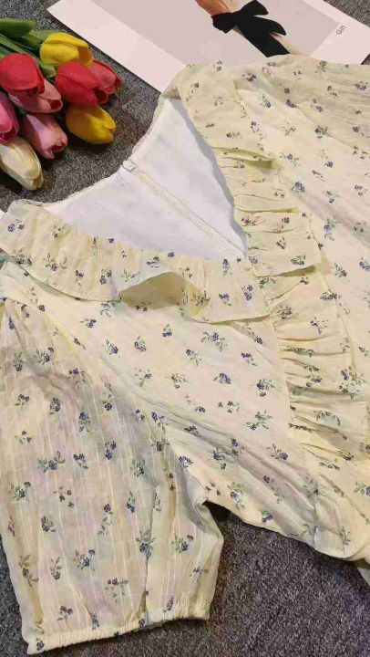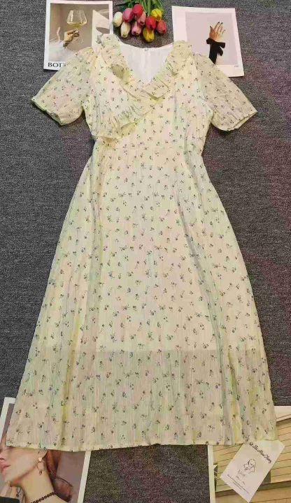 上新全清:14.8一件韩系温柔超仙黄色V领碎花连衣裙,[...