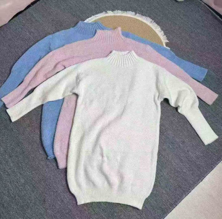 半高领慵懒风仿水貂毛毛衣女早秋新款加厚打底宽松针织连衣裙,独立包装,均码,256件,清9.5,分➕1。 货号:24862