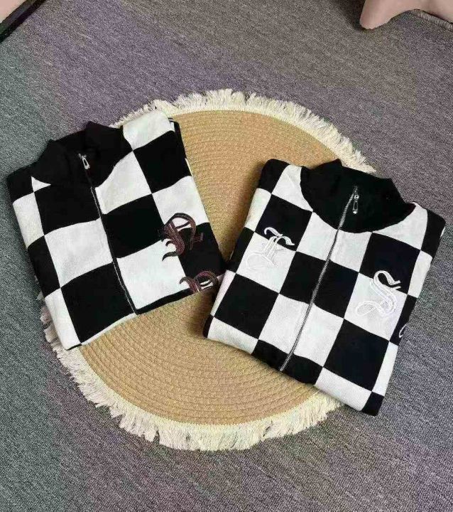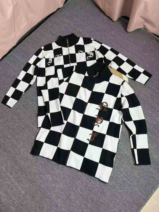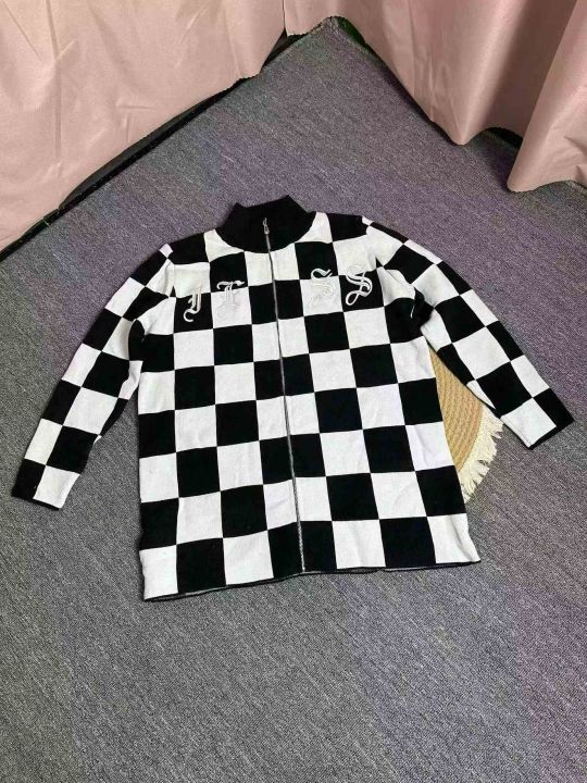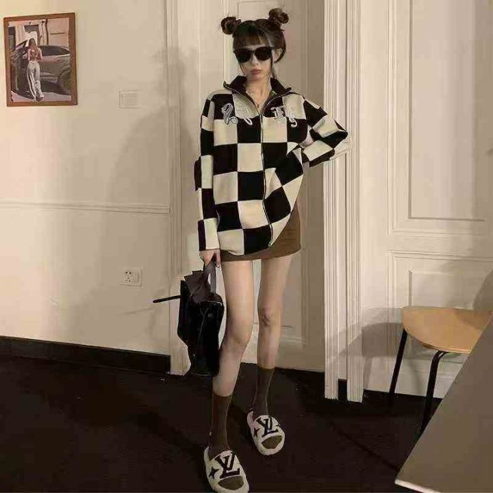 拉链针织衫外套女秋冬美式复古格子设计感小众宽松百搭开衫毛衣潮,独立包装,均码,106件,清8.8。 货号:24862