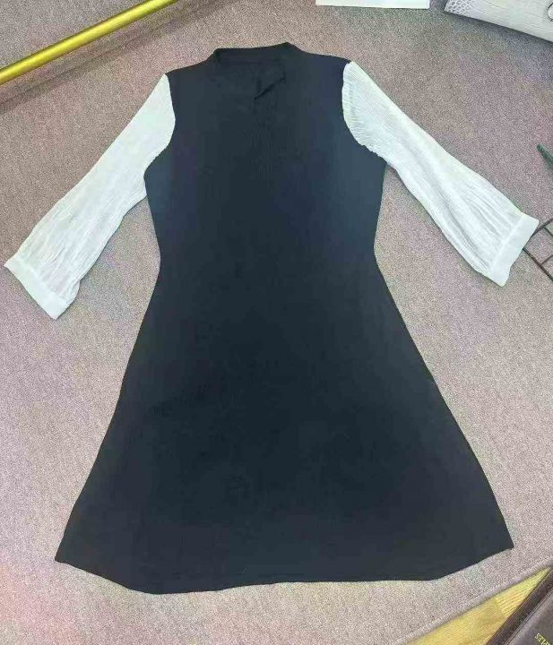 秋装韩版圆领拼接撞色连衣裙简约气质七分袖显瘦针织A字裙,独立包装,均码330件,清11.5,分➕1。 货号:24862