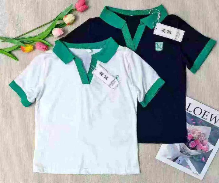 靓妹短袖V领T恤棉质辣妹polo衫,562件,M-2XL,独立包...