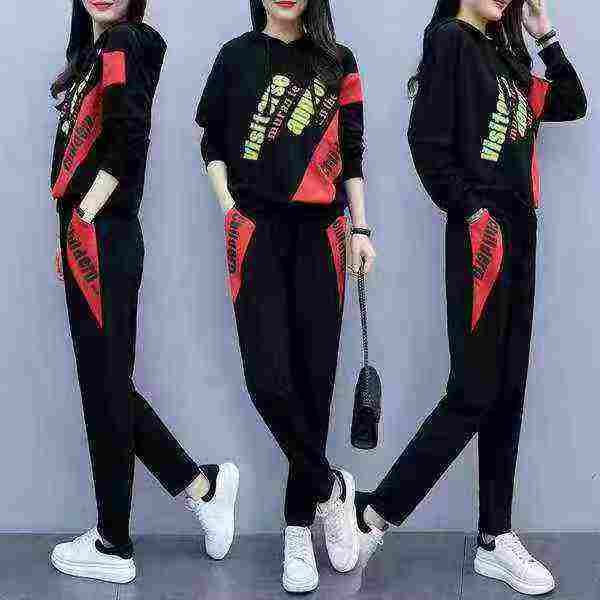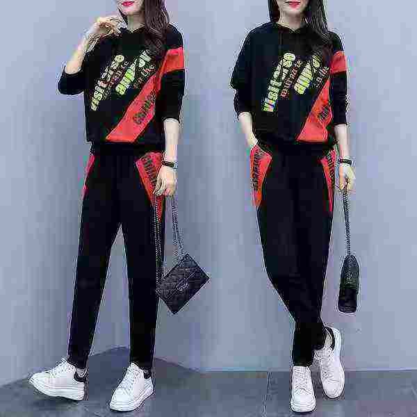 ☕️大码女装洋气减龄字母长袖运动卫衣套装春秋季新款胖mm显瘦遮肉两件套190套全清11.8元,码数S到XL,独立包装[庆祝][庆祝][庆祝]~单款黑色