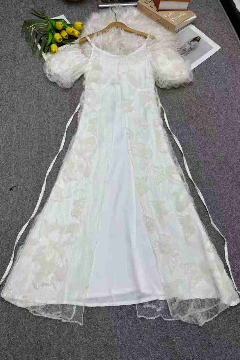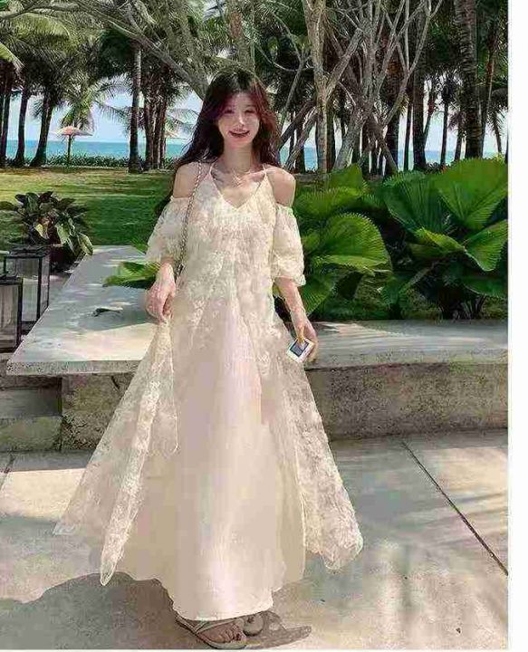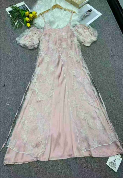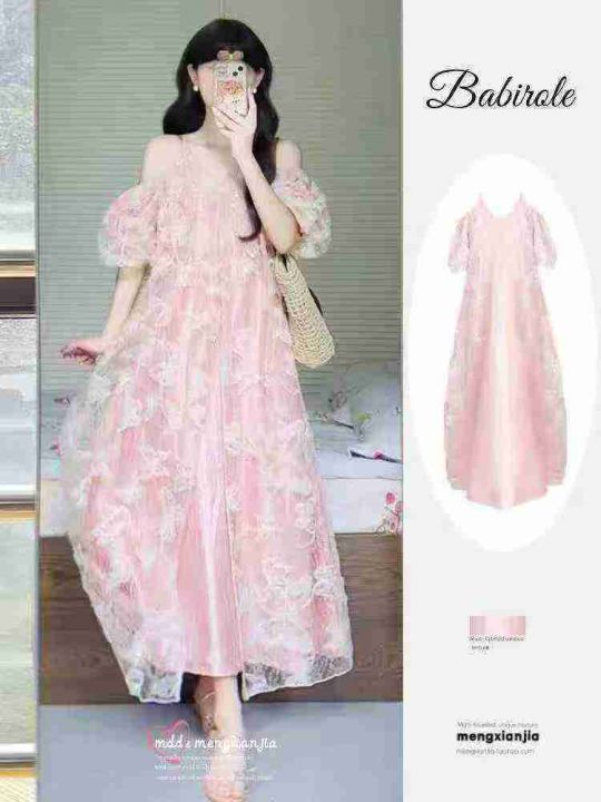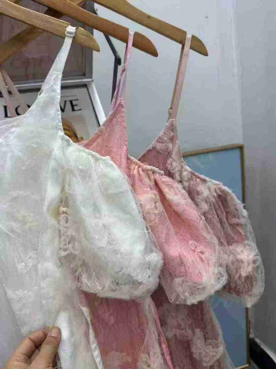 蝴蝶印花吊带连衣裙小仙女露肩宽松显瘦超仙气质长裙,独立包装,码数1-5码,数量140条,2码120厘米,大货粉色为主,货号1114#23